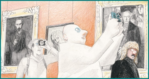 David Prudhomme déambule dans les galeries du musée du Louvre. Le voilà qui observe l'étrange ballet muet qui se tisse entre les œuvres et leurs visiteurs...